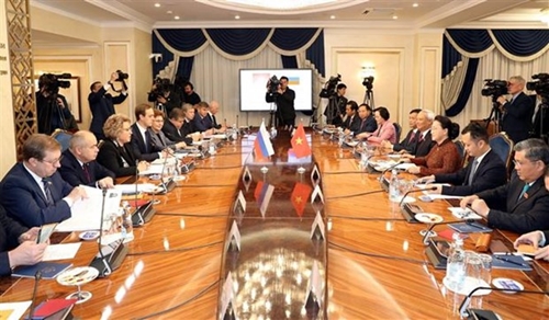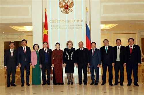 应俄罗斯联邦委员会主席瓦伦蒂娜•马特维延科(V.Matvienko)、俄罗斯国家杜马主席维亚切斯拉夫•沃洛金(V.Volodin)的邀请,越南国会主席阮氏金银率领越南国会高级代表团于2019年12月8日对俄罗斯进行正式访问。