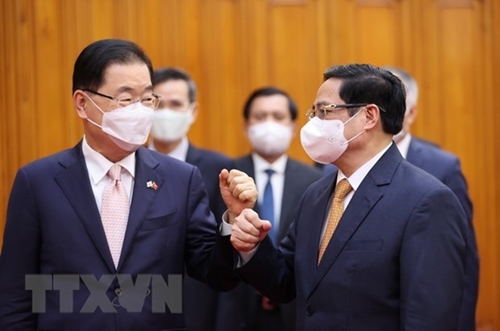 越南政府总理范明政会见韩国外交部长官郑义溶