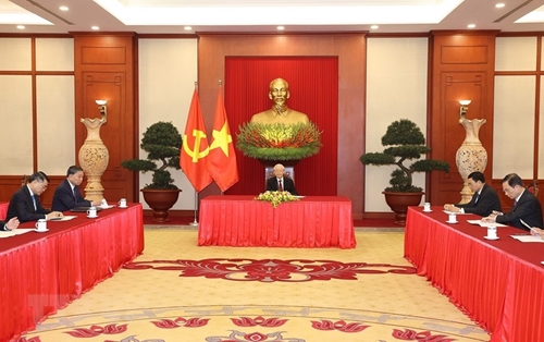 3月31日下午,越共中央总书记阮富仲在党中央总部与德国社会民族党领导人、总理奥拉夫·舒尔茨通电话。