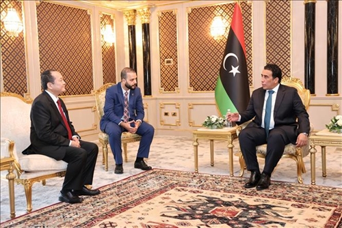 利比亚总统委员会主席穆罕默德会见越南驻埃及兼任利比亚大使阮辉勇(图片来源:越通社)
