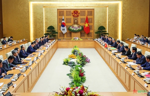越南政府总理范明政会见韩国总统尹锡悦(图片来源:人民军队报)