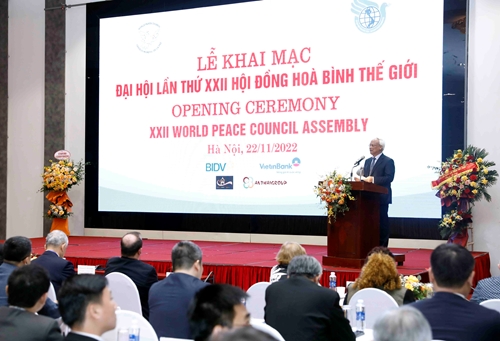于2022年11月举办的世界和平理事会第22届代表大会开幕式(图片由越友联提供的) |