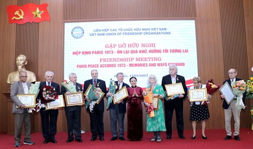 值此《巴黎协定》签署50周年之际,越友联在河内举行了“1973年《巴黎协定》——回顾过去,展望未来”的友好见面会(图片由越友联提供的) |