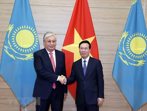 越南国家主席武文赏与哈萨克斯坦总统托卡耶夫(图片来源:越通社) |