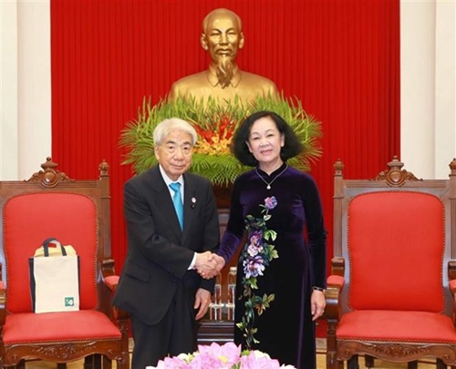 越共中央书记处常务书记张氏梅会见日本参议院议长尾辻秀久(图片来源:越通社)
