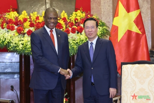 越南国家主席武文赏会见南非副总统保罗·马沙蒂莱(图片来源:人民军队报) |