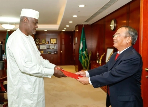 越南驻埃塞俄比亚大使阮南进日前向非盟委员会主席穆萨·法基·穆罕默德(Moussa Faki Mahamat)递交越南国家主席武文赏任命其为越南驻非洲联盟代表的国书,此举标志着越南与非盟的正式建交。