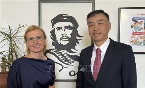 越南驻捷克共和国大使杨淮南与捷克和摩拉维亚共产党主席卡特琳娜·科内克纳(图片来源:越通社) |