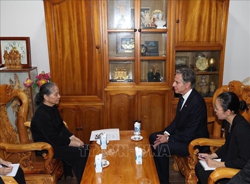 阮富仲总书记夫人吴氏敏代表家人对拜登总统和布林肯国务卿为阮富仲总书记给予的深厚感情表示感激。吴氏敏表示,阮富仲总书记在世时,始终关注培育越美关系;2023年9月,阮富仲总书记与拜登总统发表联合声明,将越美关系提升为全面战略伙伴关系。相信双方将继续有效落实2023年9月双方所发表的越美联合声明,推动两国合作关系不断走实、走深,造福两国人民。