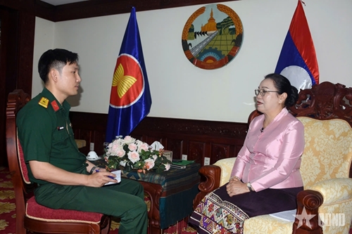 老挝驻越大使坎葆·恩塔万接受采访(图片来源:人民军队报) |