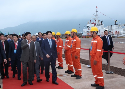 4月28日下午,老越国际港口股份公司在越南河静省圻英市(县级)永昂(Vũng Áng)经济区举行老越国际港口3号码头落成仪式。越南国家主席梁强和老挝人民革命党中央委员会总书记、国家主席通伦·西苏里出席仪式。