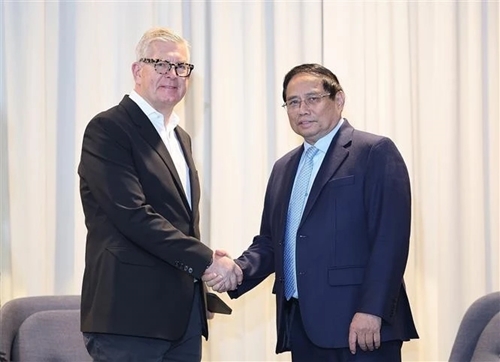 在对瑞典王国进行正式访问期间,当地时间6月13日,越南政府总理范明政在斯德哥尔摩会见了瑞典多家大型企业集团代表,包括爱立信、H&M、SYRE 和阿斯利康,就推动在越投资与合作展开讨论。