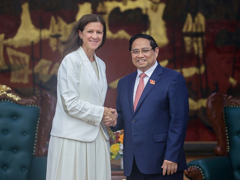 越南政府总理范明政会见美国GE Vernova公司电源事业部首席执行官玛丽亚·维多利亚·“玛丽”·辛戈尼(图片来源:越通社)