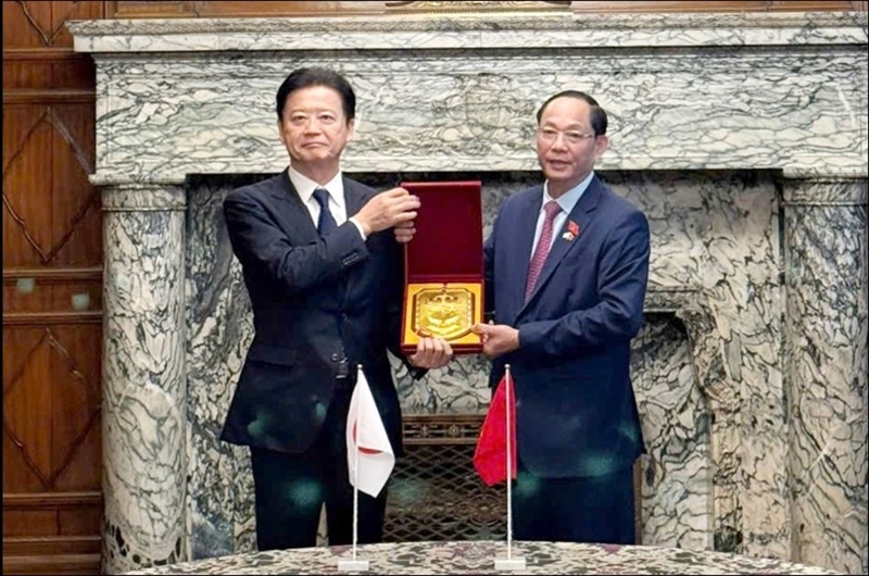 日本参议院议长关口昌一向国会副主席陈光方赠送礼物(图片来源:daibieunhandan.vn) |