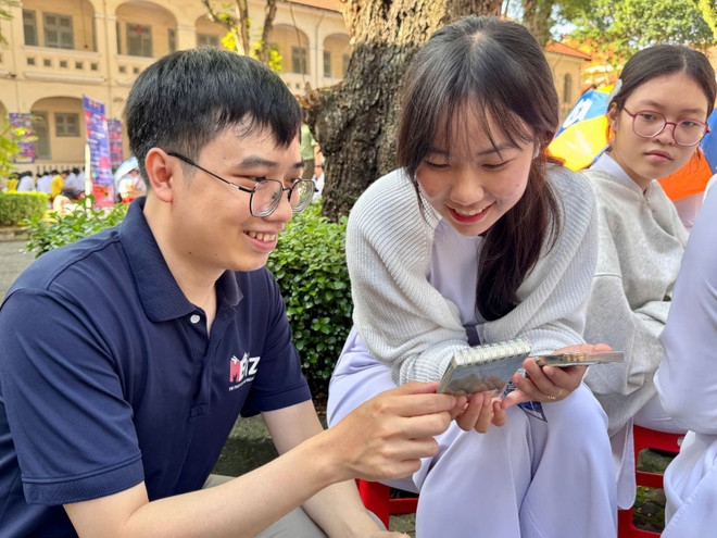 帮助学生下载和安装社交网络防诈骗应用程序(图片来源:越通社) |