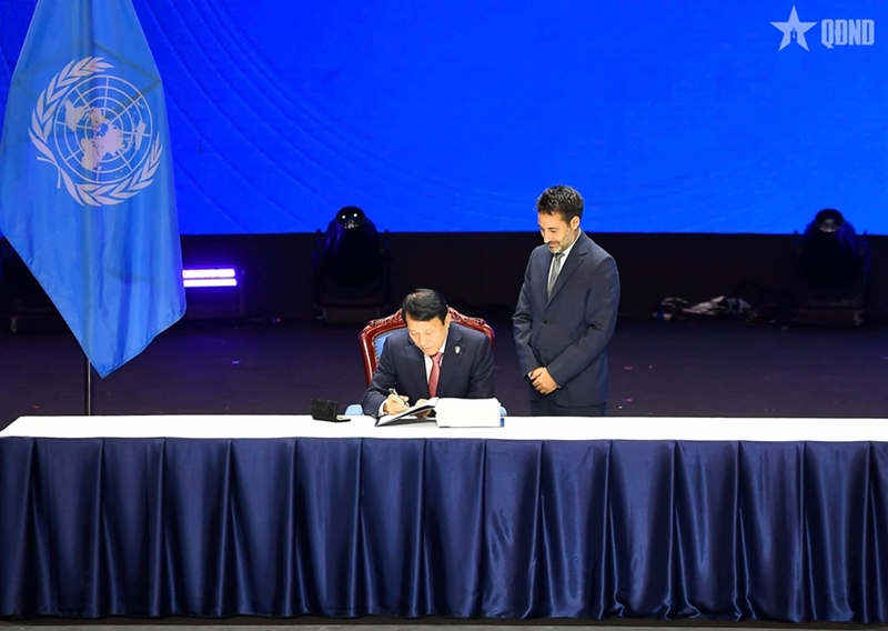 越南公安部长梁三光签署《联合国打击网络犯罪公约》(亦称《河内公约》)(图片来源:人民军队报) |