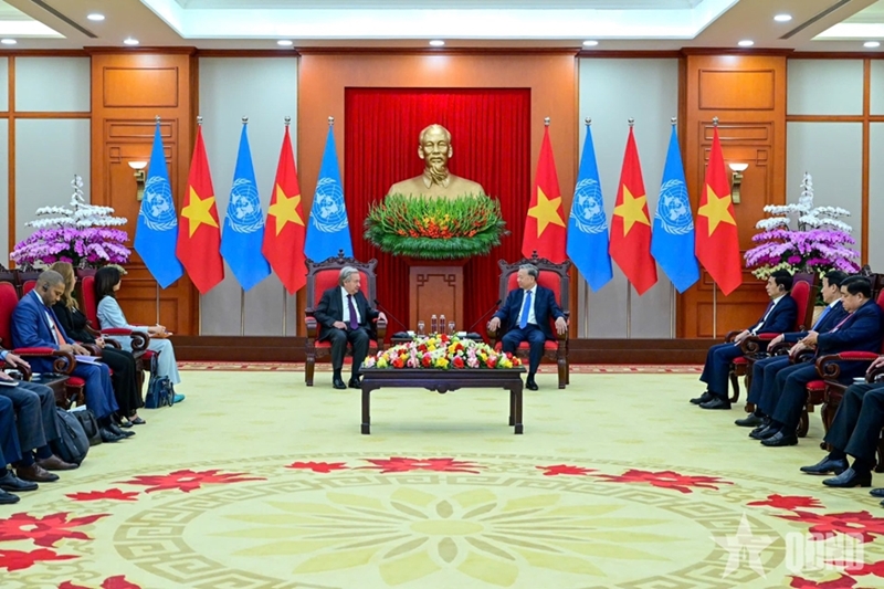 越共中央总书记苏林会见联合国秘书长古特雷斯(图片来源:人民军队报) |