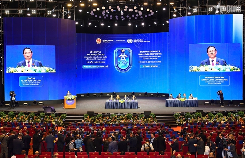 在《联合国打击网络犯罪公约》(又称《河内公约》)开放签署仪式框架内,10月25日下午,由越南政府副总理裴青山和联合国毒品和犯罪问题办公室执行主任加达·瓦利共同主持的高级别讨论会在河内举行。