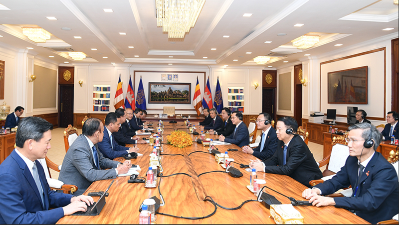 *同日下午,裴青山礼节性拜会了柬埔寨首相洪玛奈(Samdech Thipadei Hun Manet)。