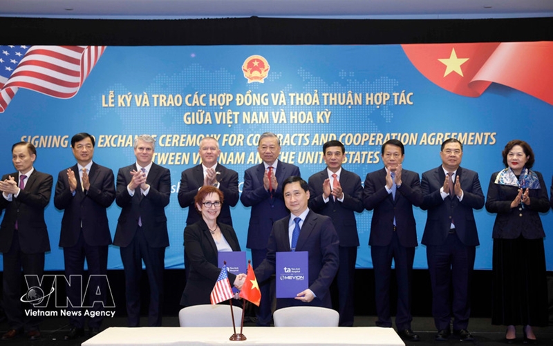 越共中央总书记苏林见证越美双方签署和交换多项合作合同和协议