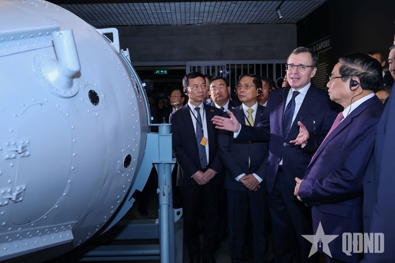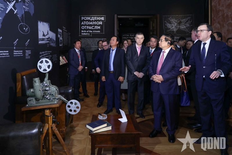 越南政府总理范明政及越南工作代表团参观俄罗斯原子能博物馆(图片来源:人民军队报) |