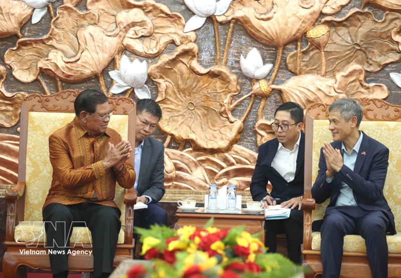越南驻柬埔寨大使阮明羽与柬埔寨人民党副主席韶肯亲王会面(图片来源:越通社) |