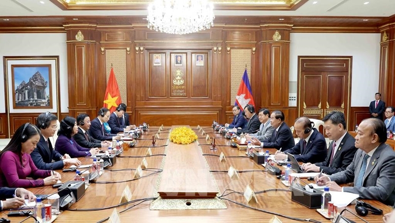 双方对两党、两国在各个领域上的合作关系均呈现出强劲发展势头,为两国人民带来切实利益感到高兴。双方评价,越共中央总书记苏林对柬埔寨王国进行国事访问并共同主持越柬两党高层会晤及越柬老三党领导人会晤是具有重大意义的历史性里程碑,不仅为推动两党、两国关系迈上新台阶注入坚实政治动力,也有力促进各项合作协议落地见效。洪森强调,柬埔寨、越南和老挝相互不可或缺,尽管三国之间已建立多种合作机制,但仍需研究建立新的合作机制,为地区和平、稳定与发展添砖加瓦。