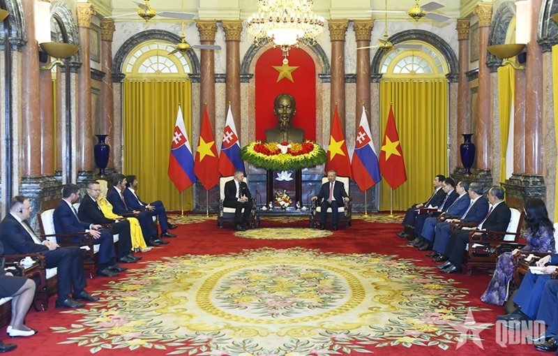 越共中央总书记、国家主席苏林会见斯洛伐克总理罗贝尔特·菲佐(图片来源:人民军队报) |