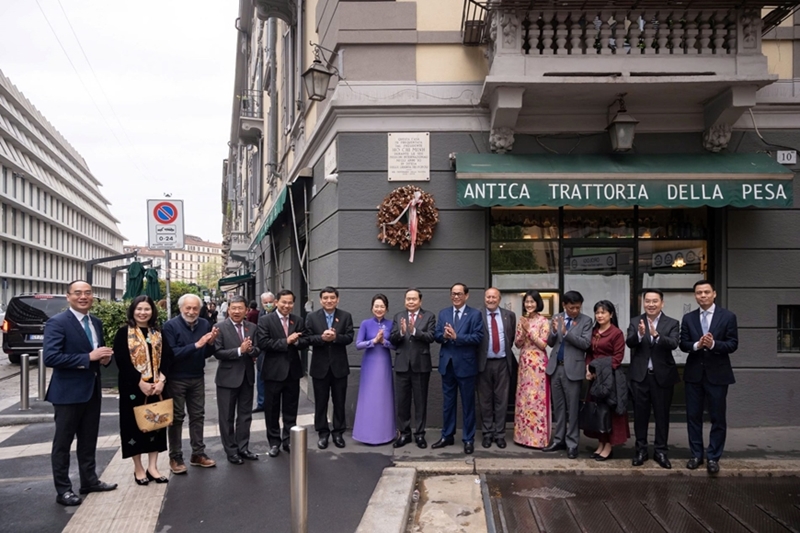 Antica Trattoria della Pesa餐厅位于米兰市帕苏比奥街10号,胡志明主席曾在此居住和工作,当时他从巴黎前来米兰会见共产国际的同志和意大利友人。餐厅外有一块白色石牌,由米兰市政府于1990年胡志明主席诞辰100周年之际安装,记录了他于1930年代为争取人民自由常来此地活动的事迹。