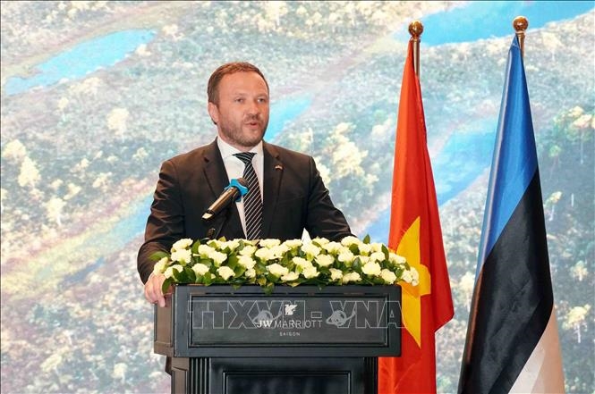 爱沙尼亚外交部长马古斯·查赫克纳发言(图片来源:越通社) |