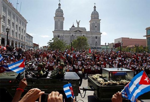 来自不同阶层的老战士、工人、学生及广大东部群众参加在圣地亚哥-德古巴市举行的追悼仪式,表达对菲德尔·卡斯特罗领袖的敬爱之心,愿追随菲德尔·卡斯特罗的革命理想。某位市民表示:“我们在这里为菲德尔领袖送行。他的离去是古巴人民的巨大损失,他所创造的业绩非寻常人能比。我为成为古巴革命及菲德尔的子民而感到自豪”。