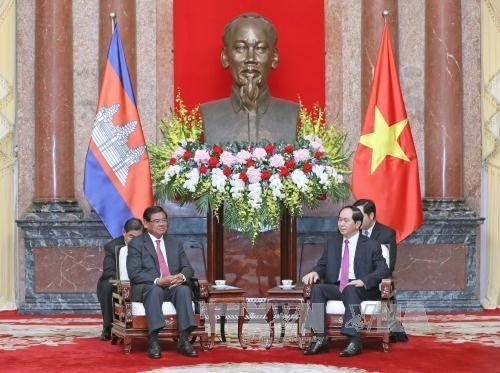 越南国家主席陈大光1月9日下午在主席府会见了对越南进行访问并出席越南公安部与柬埔寨内务部合作总结会议的柬埔寨副首相兼内政部大臣韶肯(Sar Kheng)。