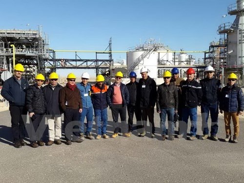 越南驻阿尔及利亚大使馆工作代表团1月25日晚前往哈斯梅撒奥德市比尔瑟巴(Bir Seba)油田向越南国家油气集团旗下勘探与生产公司(PVEP)同阿尔及利亚国家石油公司(Sonatrach)、泰国石油勘探和生产公司(PTTEP)之间的石油联营开采项目的工作人员致以新春祝福。