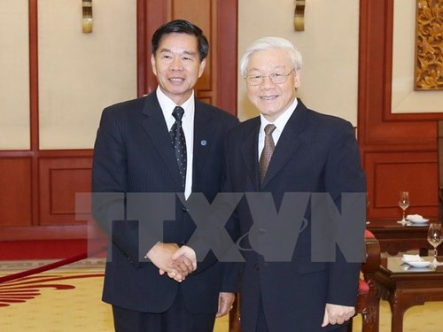 越共中央总书记阮富仲会见万象市委书记兼市长辛拉冯·库派吞(图片来源:越通社)