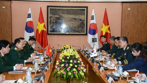 人民军队:11月30日上午,在国防部总部,越共中央委员、中央军委常委、越南人民军总参谋长、国防部副部长潘文江上将会见由韩国陆军参谋总长金勇佑大将率领从11月29日至12月1日对越南进行工作访问的韩国陆军司令部代表团。