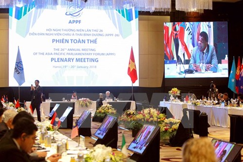 亚太议会论坛第26届年会(APPF-26)框架下,各国议会代表1月20日下午出席关于亚太地区合作与发展问题的全体会议。