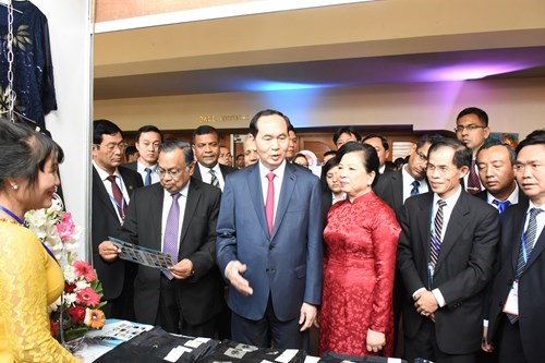 陈大光主席和夫人参观“孟加拉国越南文化日”博览会。