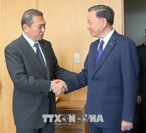 越南公安部部长苏林上将(右)会见日本国家公安委员长与国家警察机构司令(图片来源:越通社) |