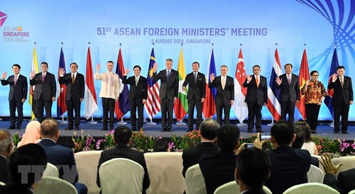 越通社驻新加坡记者报道,8月2日上午,第51届东盟外长及系列会议在新加坡博览中心开幕,东盟10国外交部长与会。越南政府副总理兼外交部长范平明率团出席。