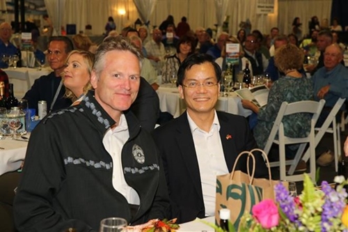 何金玉大使(右)与阿拉斯加州州长迈克·邓利维(图片来源:越通社) |