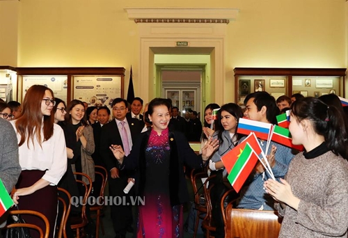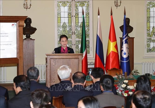 阮氏金银为有机会探访俄罗斯诸多领导尤其是拥有解放民族思想,为包括越南在内的世界诸多被压迫的民族和国家开辟解放道路的伟大领导列宁曾经研究和读书的学校而感到十分激动。她对校长Ilshat Gafurov和该校各位教授、教师和学生的热情接待表示感谢。