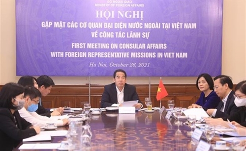10月26日下午,越南外交部以线上线下相结合形式与外国驻越代表机构召开关于领事工作的会议。