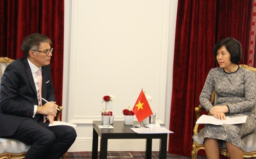 越共中央对外部副部长阮氏黄云会见法国社会党(PS)第一书记奥利维尔·福尔(Olivier Faure)(图片来源:nhandan.vn) |