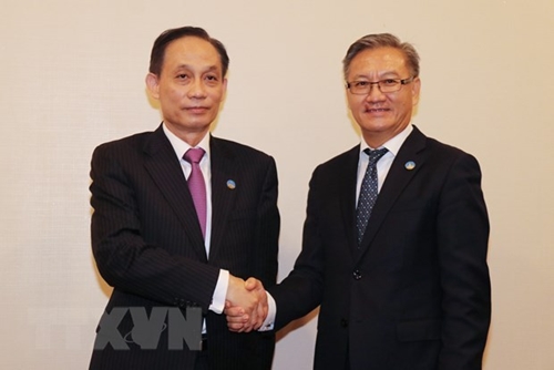 越共中央对外部长黎怀忠(左)与老挝人民革命党中央对外联络部部长通沙万·丰威汉(图片来源:越通社) |