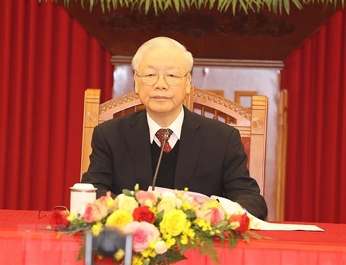 12月21日晚,越共中央总书记阮富仲在越共中央总部与古巴共产党中央委员会第一书记、古巴共和国国家主席米格尔·迪亚斯·卡内尔·贝穆德斯(Miguel Díaz-Canel Bermudez)通电话。