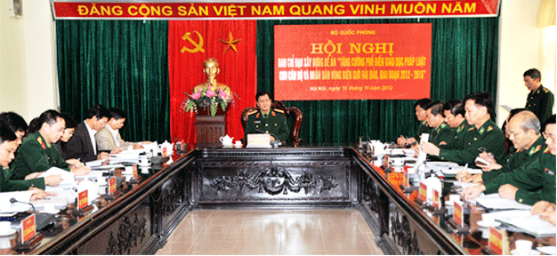 人民军报 记者陈黄英报道:11月16日,越南国防部举行了题为制定“2012-2016年阶段,加强向边界、海岛干部,人民进行法制宣传教育”提案的会议。越共中央委员、中央军委常务委员、国防部副部长阮成弓上将主持了会议。