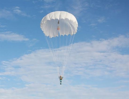 一朵洁白伞花在天空中绽放(图片来源:人民军队报)