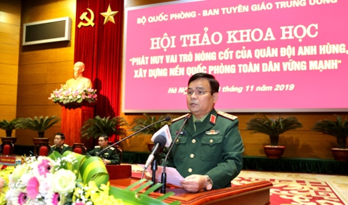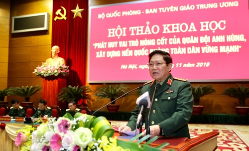 吴春历大将在研讨会上发表讲话时强调:75年来,在党的领导下和胡志明主席的教育和培训下,越南人民军已不断成长壮大。从34名战士组成的队伍,经过两场抵抗殖民主义者和帝国主义者夺取民族独立的战争及履行国际义务,到建设社会主义和革新与融入国际时期,我军在结构上日益得到建设、巩固和完善,拥有综合实力,满足捍卫祖国任务的要求。因此,研讨会应客观、充分地评估民族、军队的光荣传统;我国军民的优良传统和显赫战功。从而,激发民族自豪感和自尊心,发挥革命英雄主义,提升爱国情怀、自立自强、克服一切困难和挑战的精神,尽力建设强大的全民国防,建设牢固的全民国防与人民安全相结合的阵势;建设革命化、正规化、精锐化、现代化的越南人民军,满足新形势下捍卫越南社会主义祖国任务的要求。