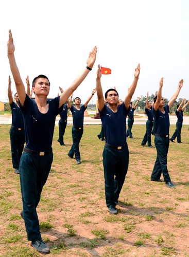 人民军队记者阮俊辉报道:来访防空空军军种361师直属一些训练单位,刚进入军营的新兵干脆的敬军礼动作给我们留下深刻印象。虽然太阳光不太强烈,但若一整天在一个地点,尤其是在混凝土操场上训练就十分难受。因此,各单位合理地安排训练计划,帮助部队缓解训练初期的紧张和压力。