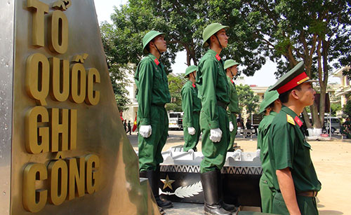 10月12日,为葬礼服务的80名礼兵队干部和战士从上午7时30分到午夜24时全程服务葬礼。除此之外,还有仪仗兵队伍担任守护灵柩任务和其他70名战士担任安放花圈的工作。担任大将灵柩护送工作的13名礼兵是经过了严格的挑选,这些礼兵的身高和年龄都达到了理想的标准。 出身太平省的黎陈富战士表示:“能够为大将的国葬服务是我的荣誉和自豪。我和战友会竭尽全力胜利完成上级所交付的任务”
